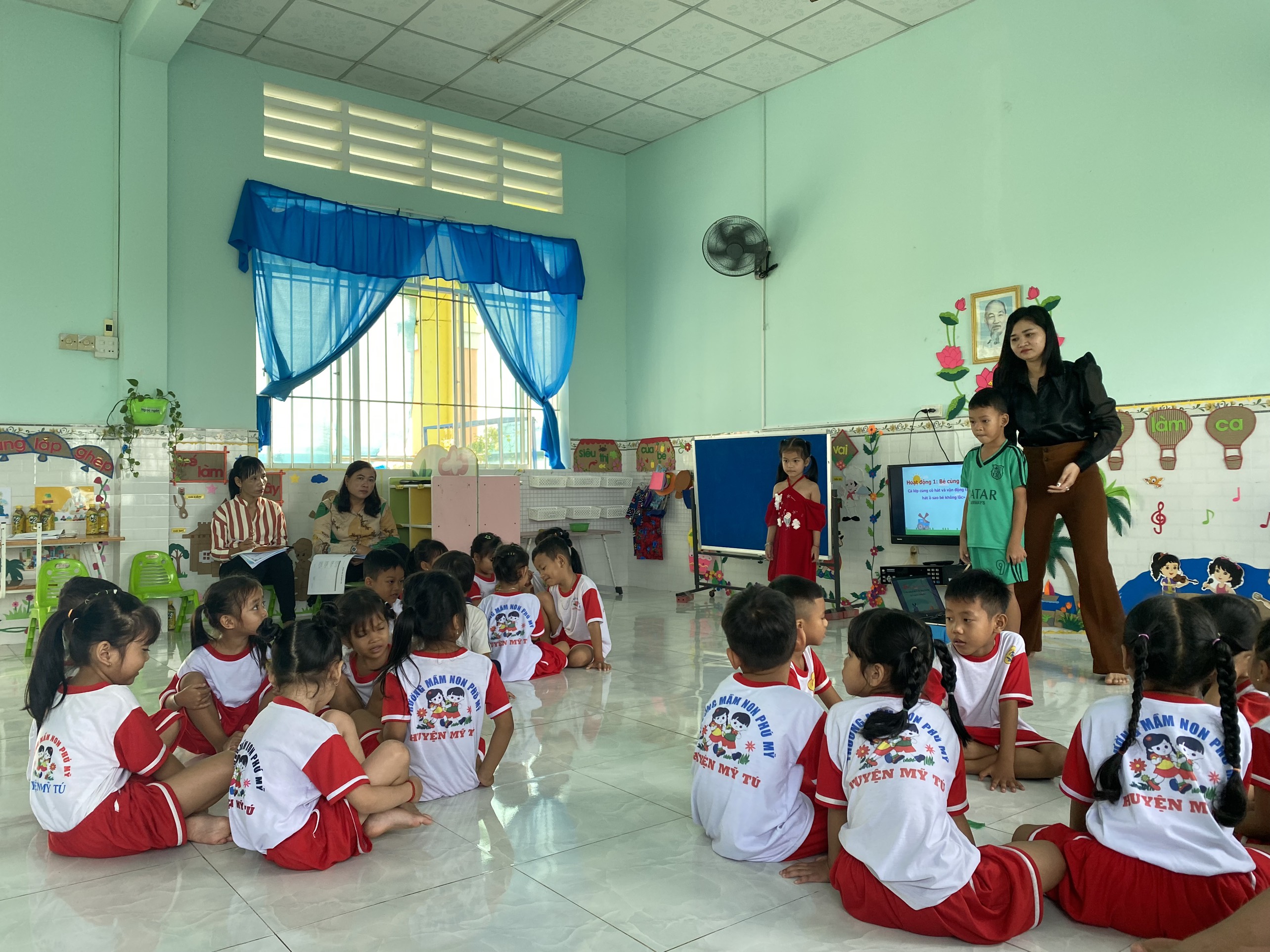 Nhằm tăng cường nhận thức cho cán bộ quản lý, giáo viên Mầm non về giới, bình đẳng giới, xóa bỏ định kiến giới, khuôn mẫu giới và nhận diện các biểu hiện bất bình đẳng giới trong chương trình GDMN, từ đó vận dụng thực hiện tích hợp giáo dục giới trong chương trình Giáo dục Mầm non (GDMN) đảm bảo nâng cao chất lượng GDMN, giúp trẻ em phát triển toàn diện, chuẩn bị sẵn sàng vào lớp một và học tập thành công ở giai đoạn tiếp theo. Ngày 08/12/2023, trường Mầm non Phú Mỹ tổ chức hoạt động giáo dục lồng ghép chuyên đề "Giáo dục giới" trong thực hiện Chương trình GDMN ở 3 độ tuổi: Mầm, Chồi, Lá. Tham dự chuyên đề gồm có lãnh đạo nhà trường và toàn thể giáo viên ở 3 tổ chuyên môn.