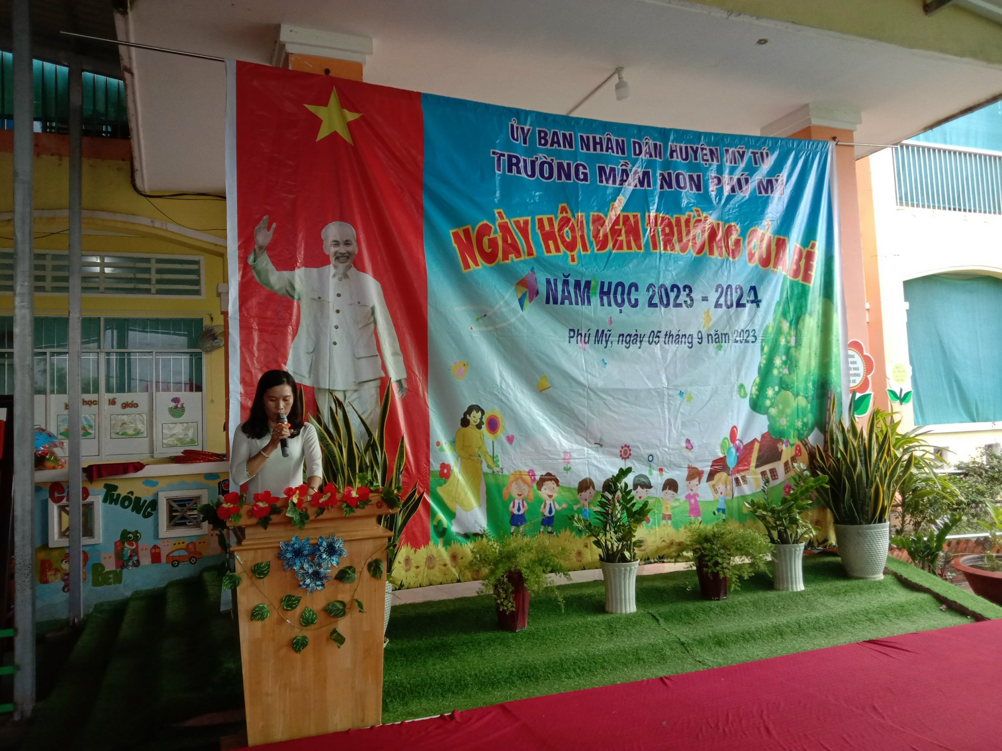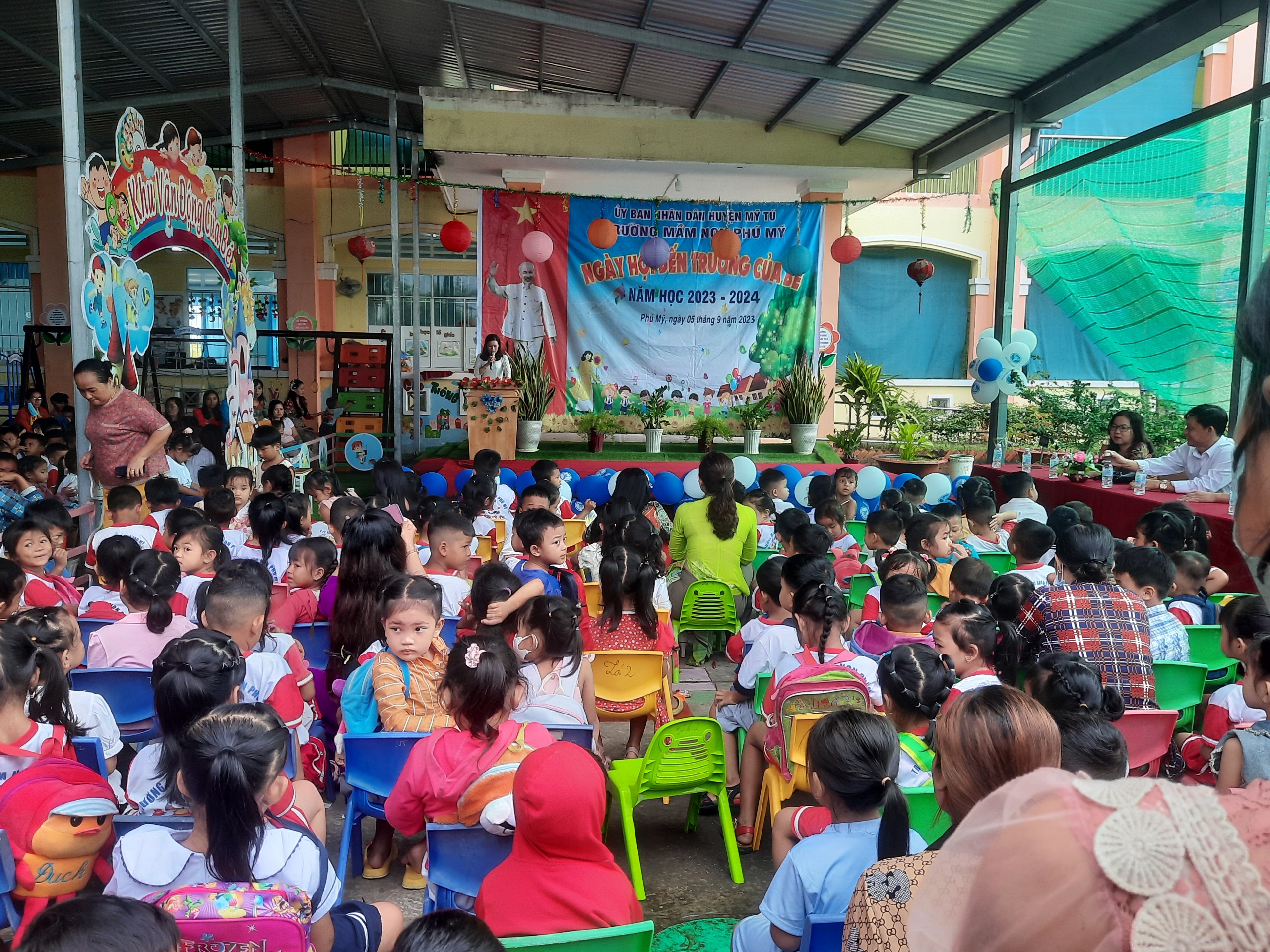 Hòa chung niềm vui cả nước chào mừng năm học mới, hưởng ứng ngày toàn dân đưa trẻ đến trường, thực hiện tinh thần chỉ đạo của ngành. Sáng ngày 05/9/2023. Trường Mầm non Phú Mỹ long trọng tổ chức “Ngày hội đến trường của bé” năm học 2023 - 2024, buổi Lễ diễn ra với không khí vui tươi và ý nghĩa.