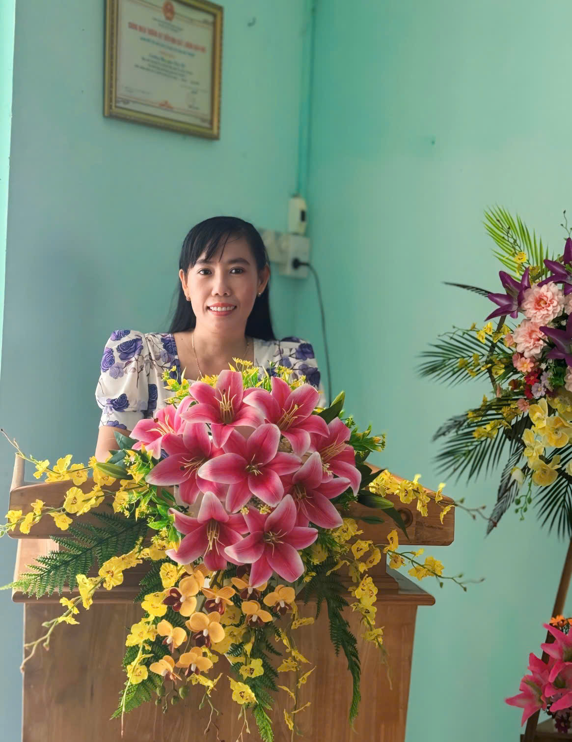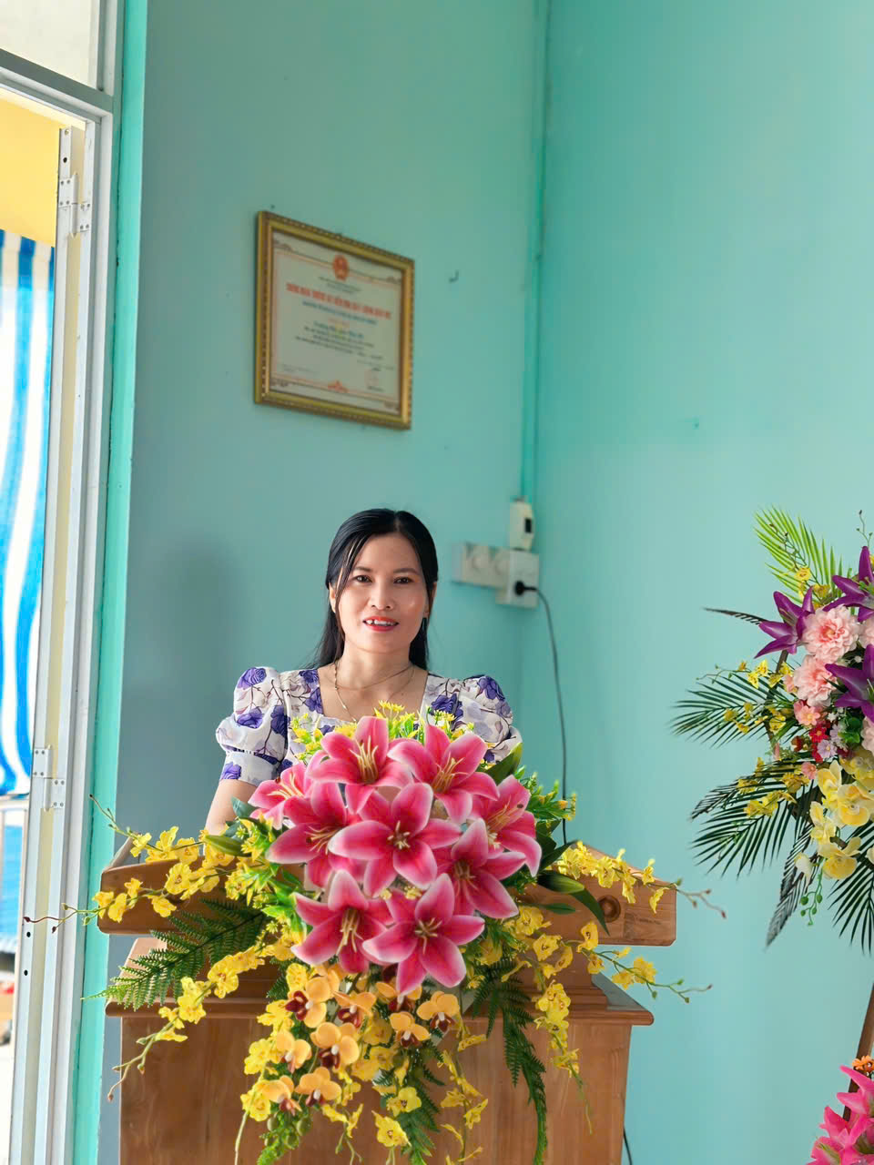 - Cô Nguyễn Thị Ánh Hường – Bí thư chi bộ, Hiệu trưởng nhà trường phát biểu báo cáo kiểm điểm việc thực hiện đường lối, chủ trương của Đảng, chính sách, pháp luật của Nhà nước của nhà trường; Đánh giá, tổng kết và kiểm điểm trách nhiệm của Hiệu trưởng trong việc thực hiện kế hoạch nhiệm vụ năm học 2024 - 2025 và phát động phong trào thi đua 2025- 2026.