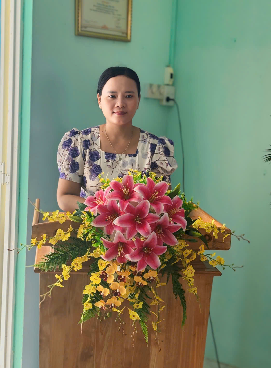 Cô Lâm Thị Sà Rửa, kế toán nhà trường báo cáo công tác tài chính năm 2024: