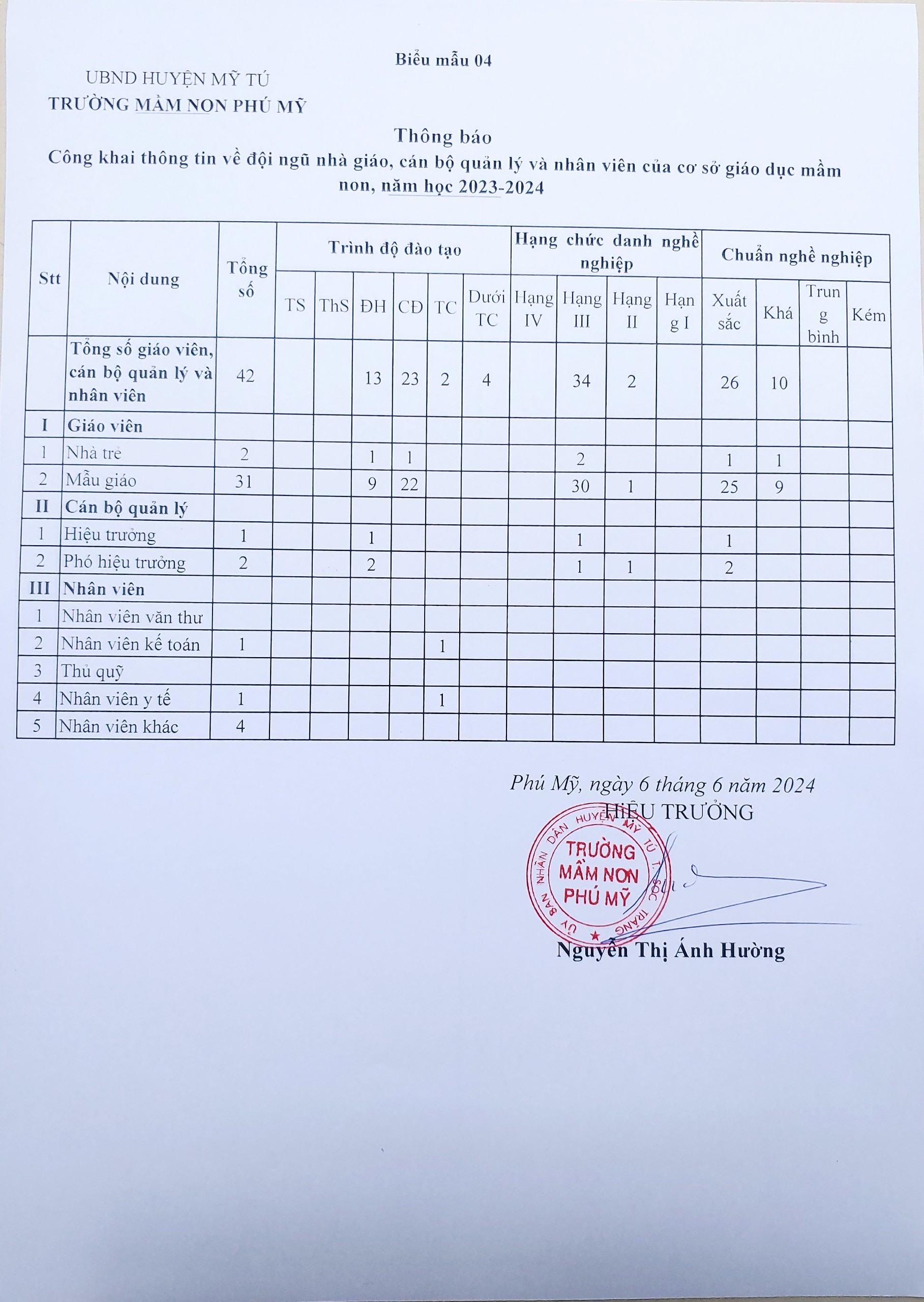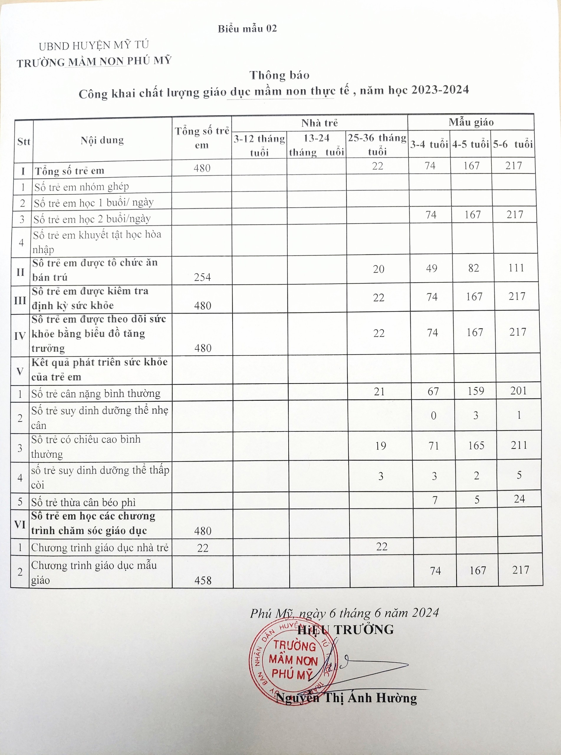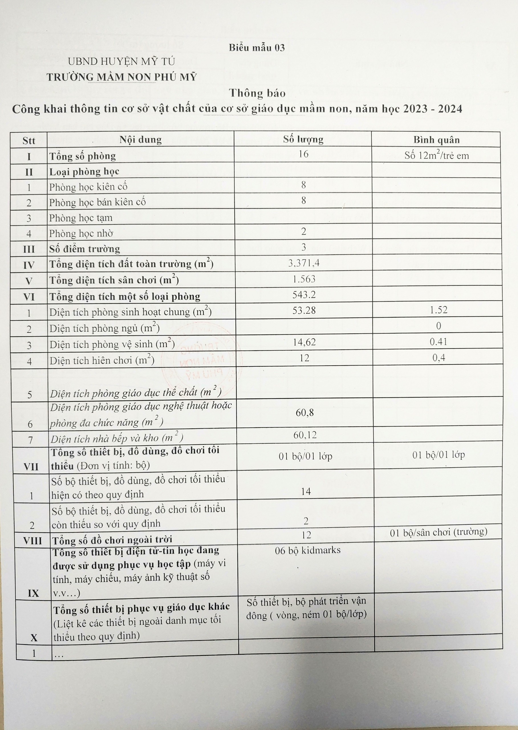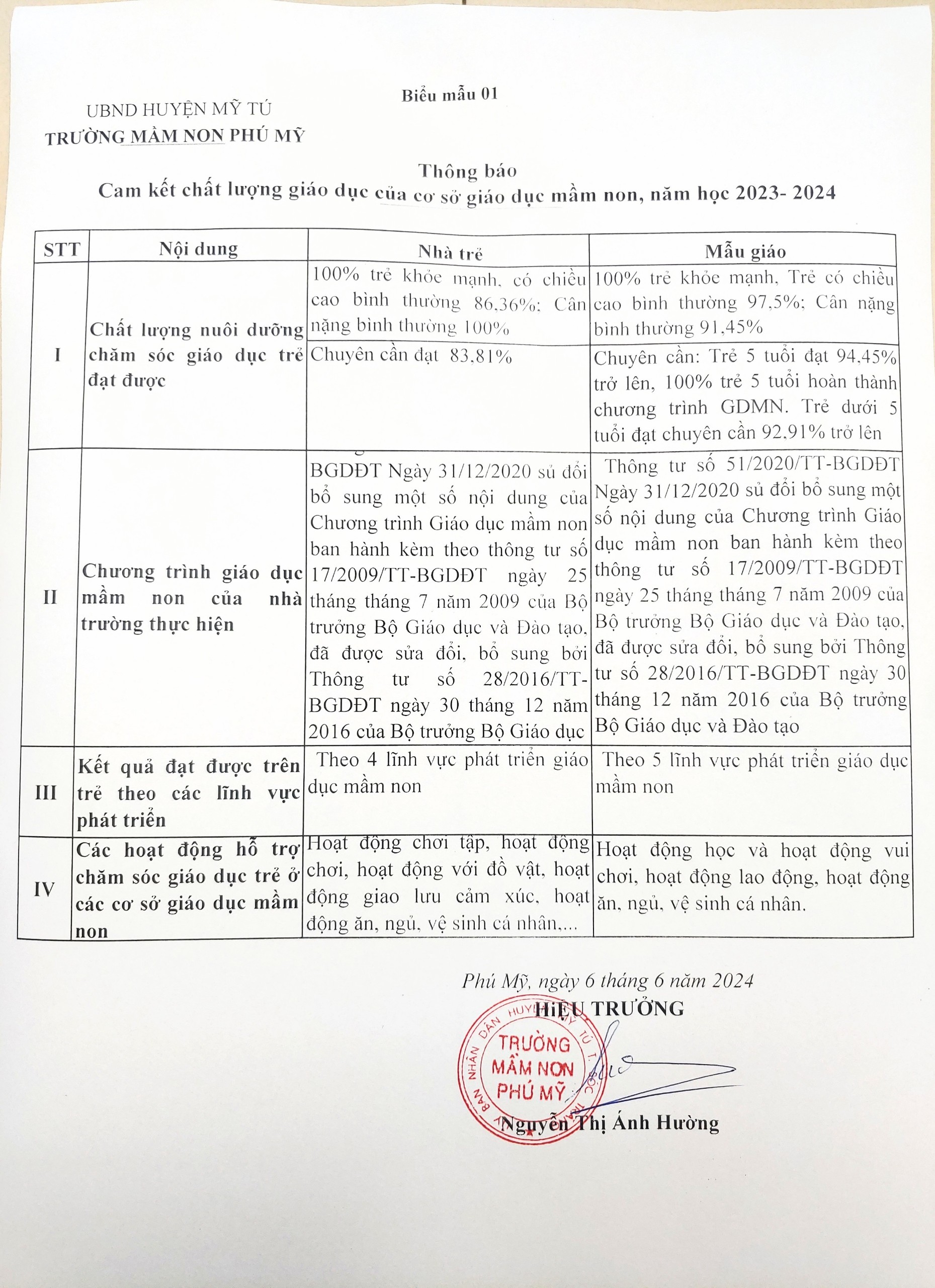 Căn cứ Thông tư số 36/2017/TT-BGDĐT ngày 28/12/2017 của Bộ Giáo dục và Đào tạo ban hành quy chế thực hiện công khai đối với cơ sở giáo dục và đào tạo thuộc hệ thống giáo dục quốc gia, trường Mầm non Phú Mỹ công khai như sau: