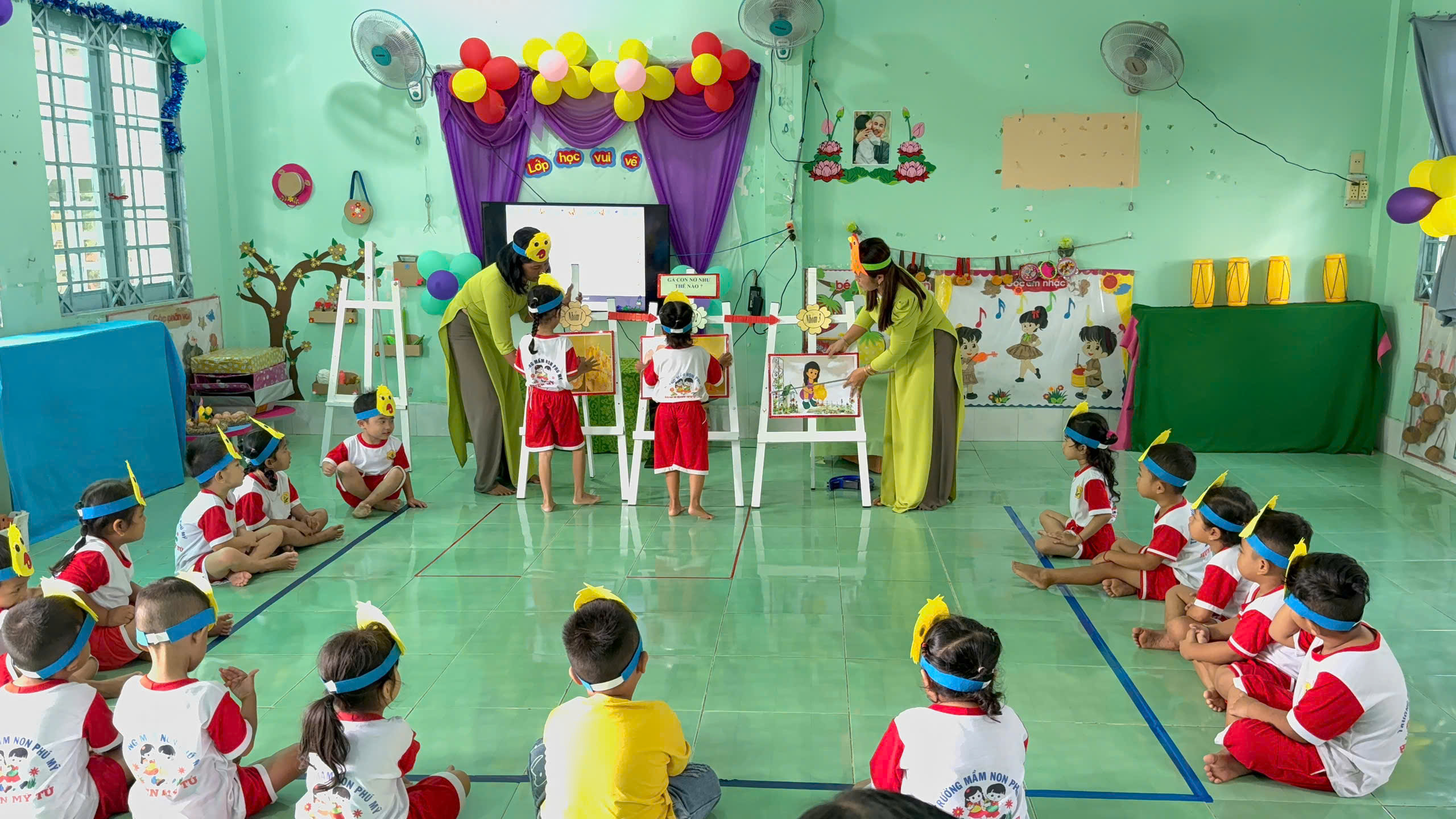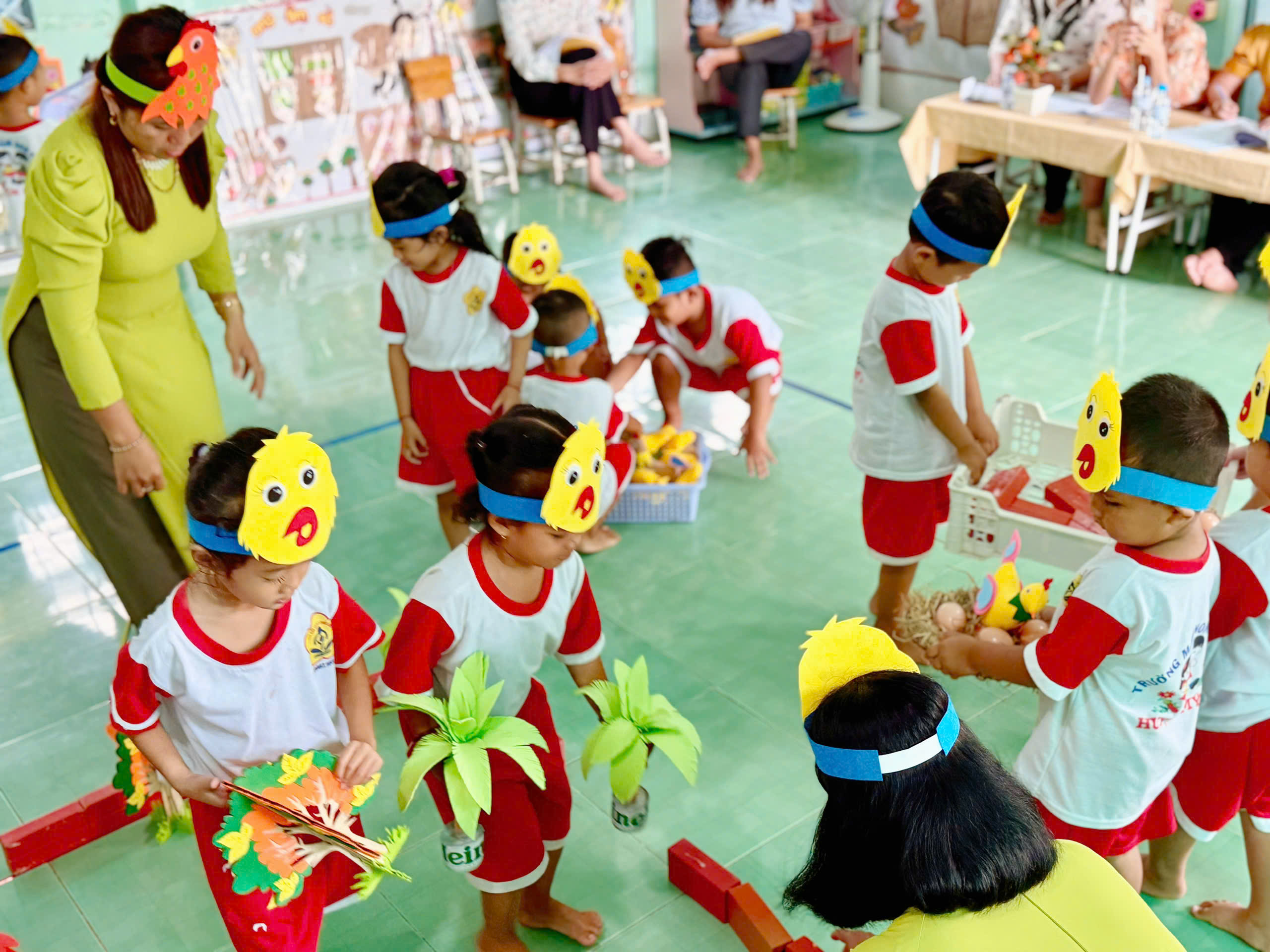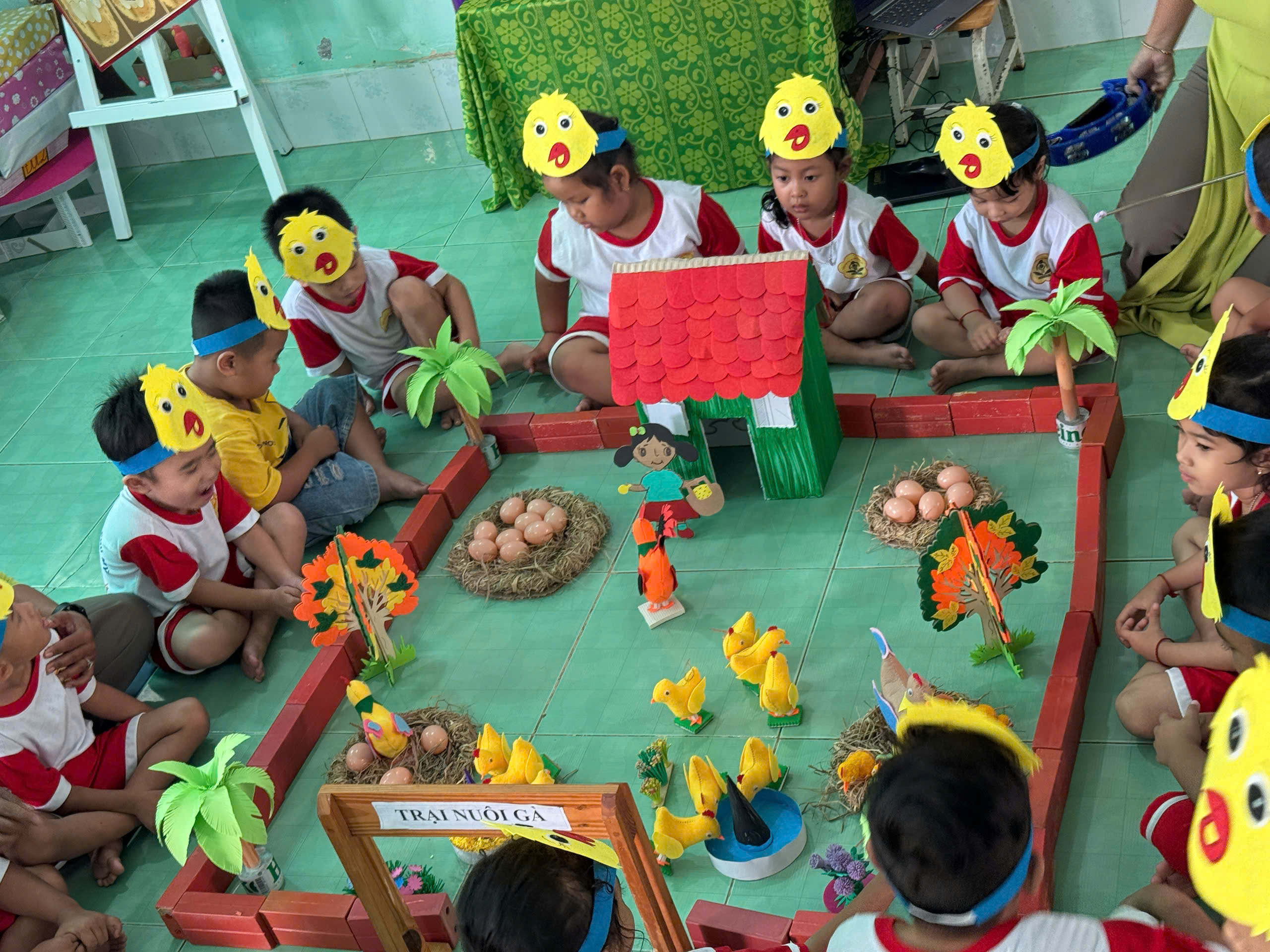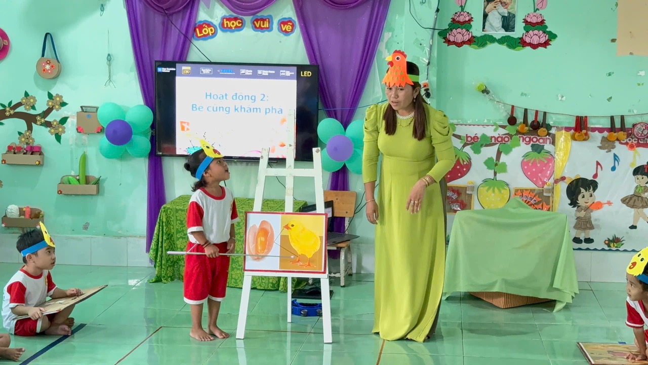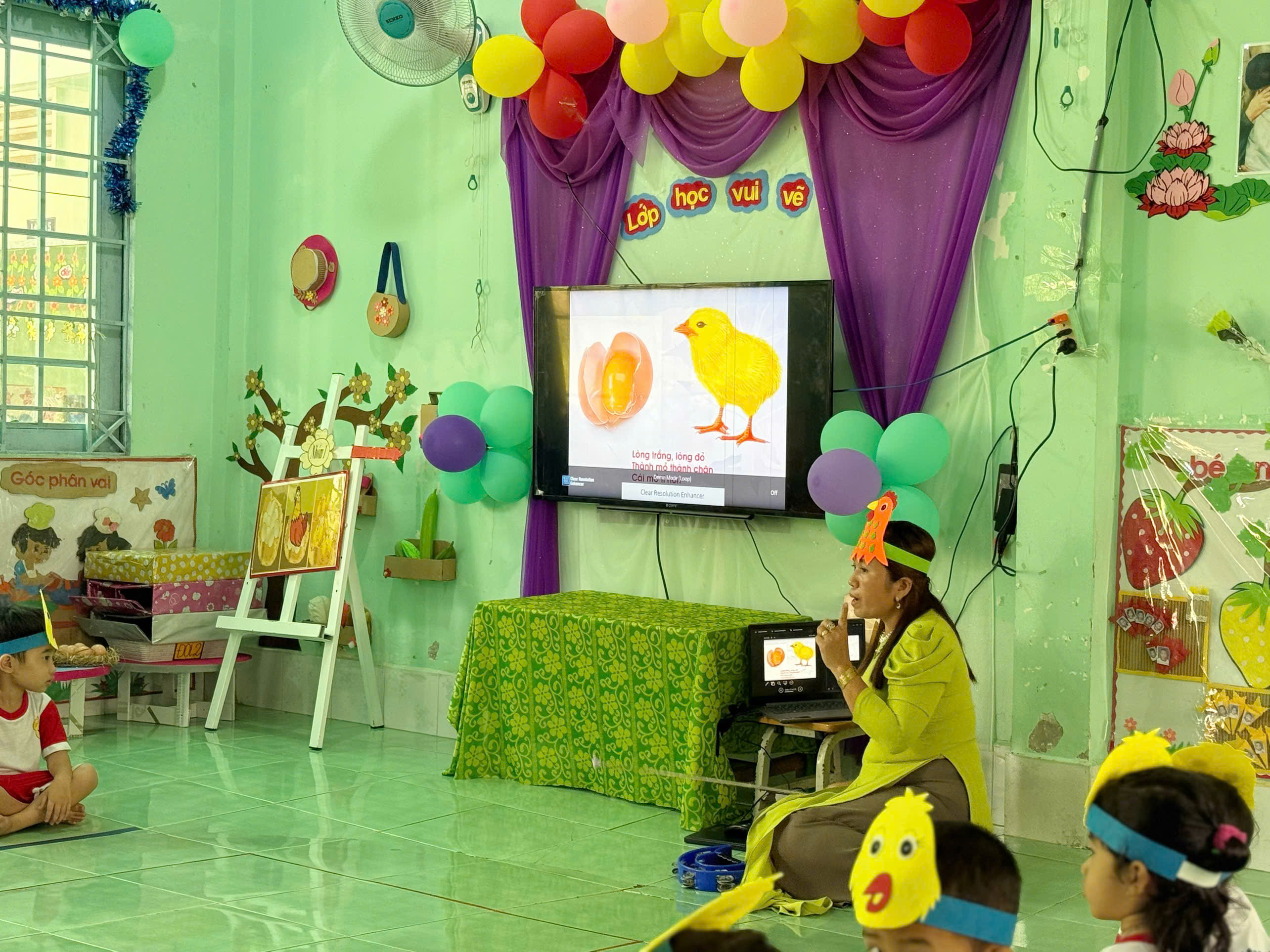Tác phẩm văn học là một loại hình nghệ thuật đóng vai trò quan trọng trong sự phát triển toàn diện của trẻ mầm non. Văn học không chỉ giúp trẻ phát triển ngôn ngữ, mà còn góp phần hình thành tư duy, trí tưởng tượng, cảm xúc, và kỹ năng xã hội. Trong Chương trình GDMN, cho trẻ làm quen với tác phẩm văn học là 1 nội dung trong lĩnh vực phát triển ngôn ngữ, để đổi mới hình thức tổ chức hoạt động "Giáo dục lấy trẻ làm trung tâm", tăng cường cho trẻ trải nghiệm thông qua trực tiếp khám phá, giúp trẻ phát huy khả năng quan sát, phát hiện giải quyết vấn đề, nhà trường đã tổ chức chuyên đề "Tổ chức hoạt động dạy trẻ đọc thơ: Đàn gà con theo quy trình khám phá 5E", hoạt động này được Cô Lý Thị Xà Vôl tổ chức tại lớp Mầm 3. Qua hoạt động, giáo viên được chia sẻ kiến thức, phương pháp tổ chức hoạt động đối với tiết dạy trẻ đọc thơ theo quy trình 5E, qua đó phát huy tính sáng tạo, linh hoạt của giáo viên trong tổ chức hoạt động giáo dục steam theo quy trình 5E tại nhà trường.