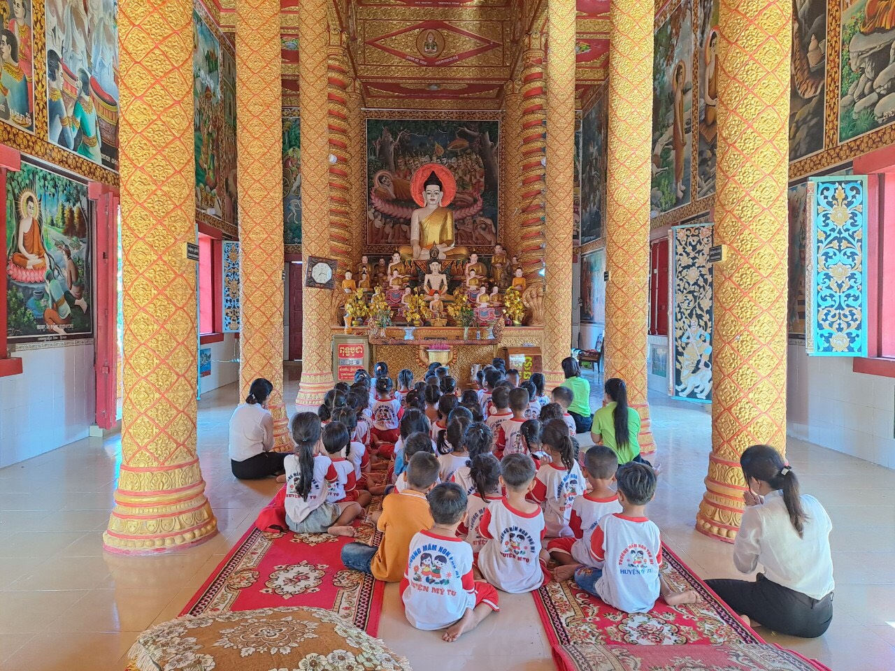 Sáng ngày 03/05/2024, trường Mầm non Phú Mỹ tổ chức cho trẻ đi thăm quan trải nghiệm tại Chùa Bét Tôn, Xã Phú Mỹ. Buổi trải nghiệm tham qua chùa Bét tôn của các bé trường mầm non Phú Mỹ là hoạt động ý nghĩa, trẻ được tham quan kiến trúc xây dựng đặc biệt của nhà chùa với nhiều cây xanh bóng mát, trẻ biết được nơi mình sống có một nơi thanh tịnh, là chốn linh thiêng mang lại sự bình yên, an lành cho mọi người. Qua hoạt động này trẻ có thêm vốn hiểu biết về các giá trị truyền thống văn hóa của quê hương. Qua đó giáo dục trẻ biết trân trọng, giữ gìn các giá trị truyền thống văn hóa và bồi dưỡng cho trẻ tình yêu với quê hương đất nước.
