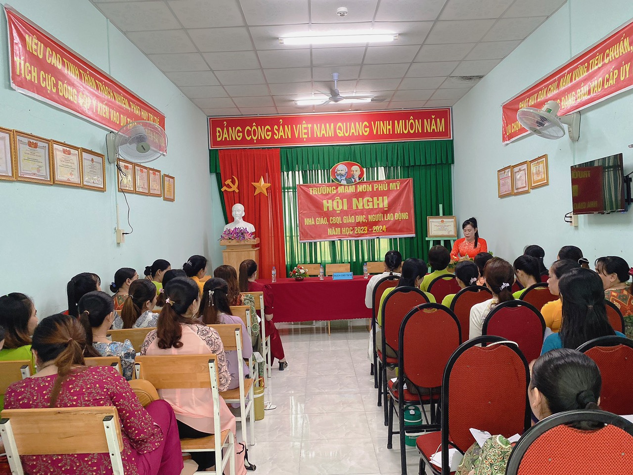 Nhằm đánh giá kết quả thực hiện năm học 2022-2023, đề ra kế hoạch, chỉ tiêu phấn đấu, đề xuất, thống nhất những giải pháp nâng cao chất lượng giáo dục trong năm học 2023 - 2024. Chiều ngày 26/9/2023 trường Mầm non Phú Mỹ long trọng tổ chức Hội nghị nhà giáo, cán bộ quản lý giáo dục, người lao động năm học 2023-2024.