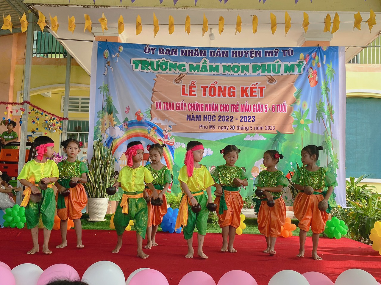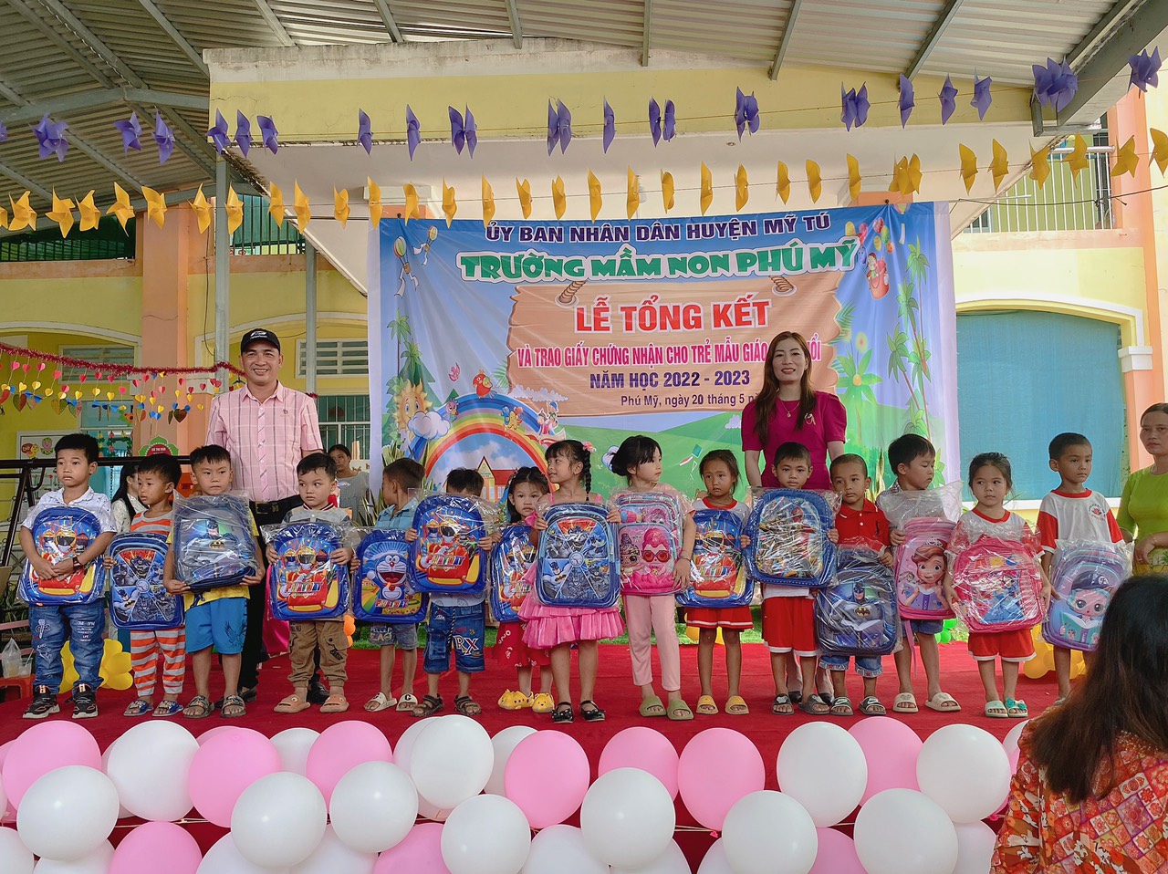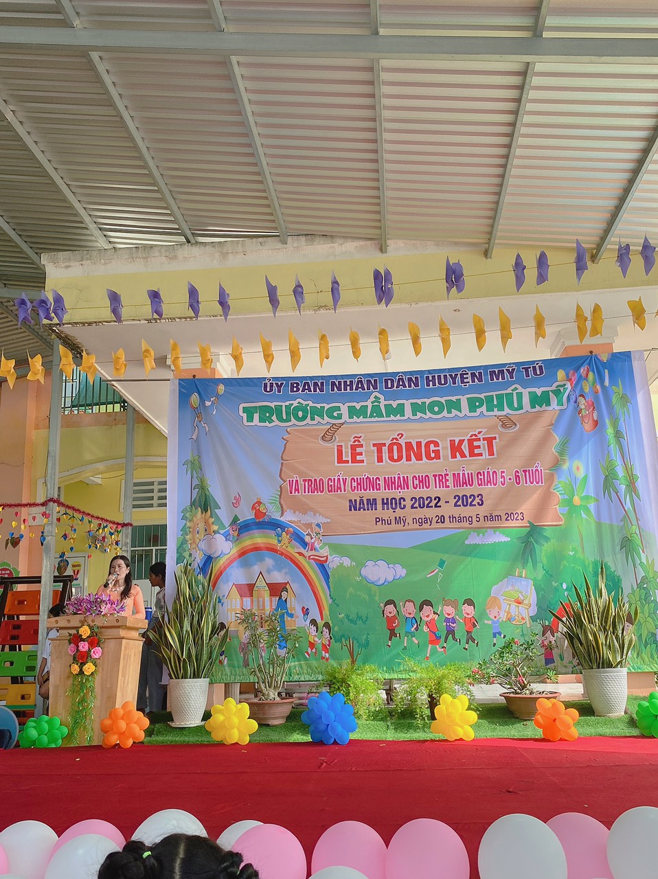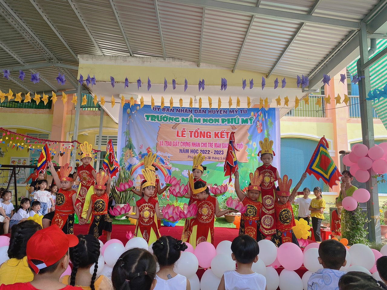 Năm học 2022 - 2023, một năm học cùng với sự nỗ lực và phấn đấu của tập thể sư phạm trường mầm non Phú Mỹ. Đây cũng là lúc cô và trò trường mầm non Phú Mỹ điểm lại những nỗ lực phấn đấu và kết quả đạt được của nhà trường trong năm học vừa qua. Thực hiện kế hoạch số: 49/KH-MNPM ngày 08/5/2023 của Trường Mầm non Phú Mỹ tổ chức “Lễ tổng kết và trao giấy chứng nhận hoàn thành chương trình GDMN cho trẻ Mẫu giáo 5, 6 tuổi”. Vào ngày 20/5/2023, Trường Mầm non Phú Mỹ long trọng tổ chức “Lễ tổng kết và trao giấy chứng nhận hoàn thành chương trình GDMN cho trẻ Mẫu giáo 5, 6 tuổi”.