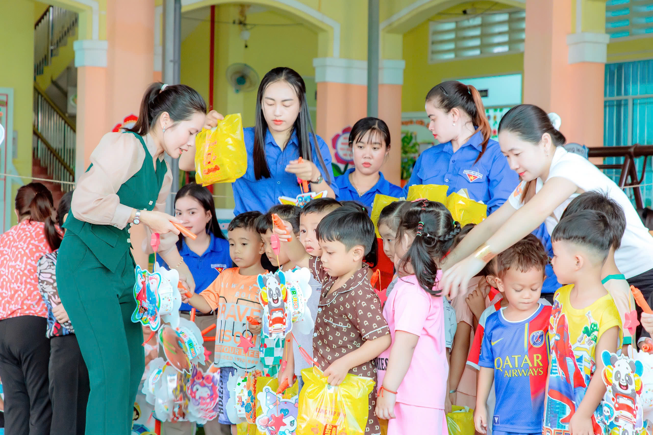 - Lãnh đạo và các mạnh thường quân hỗ trợ những phần quà dành tặng cho các bé: