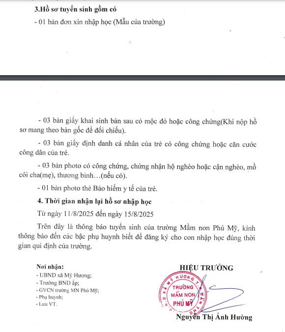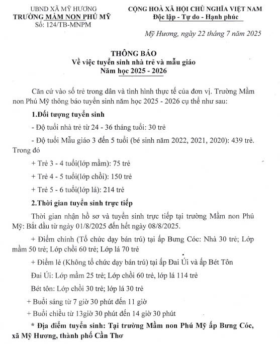 TRƯỜNG MẦM NON PHÚ MỸ THÔNG BÁO TUYỂN SINH NĂM HỌC 2025 - 2026