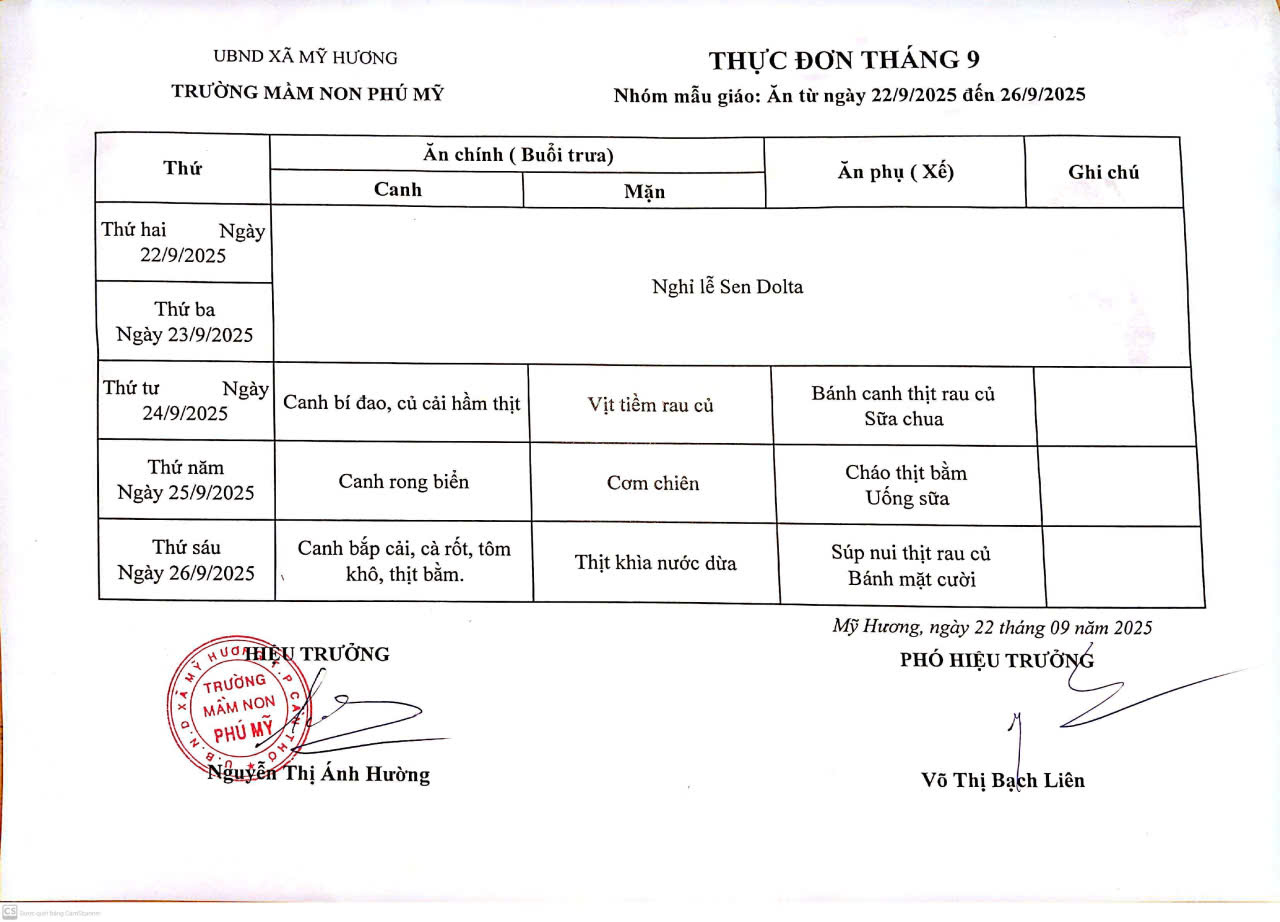 THỰC ĐƠN NHÓM MẪU GIÁO TUẦN 3.9.2025