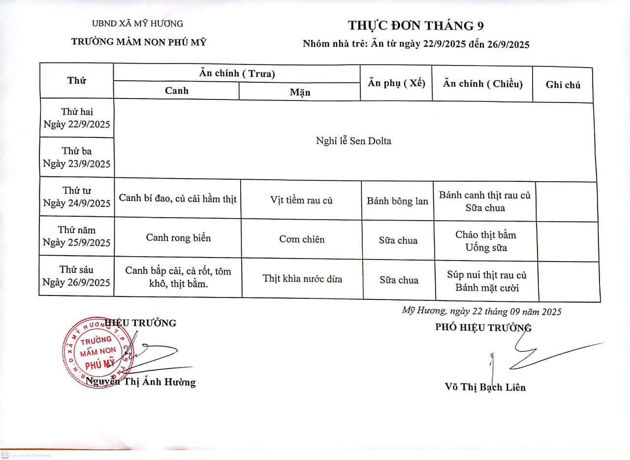 THỰC ĐƠN NHÓM NHÀ TRẺ TUẦN 3.9.2025
