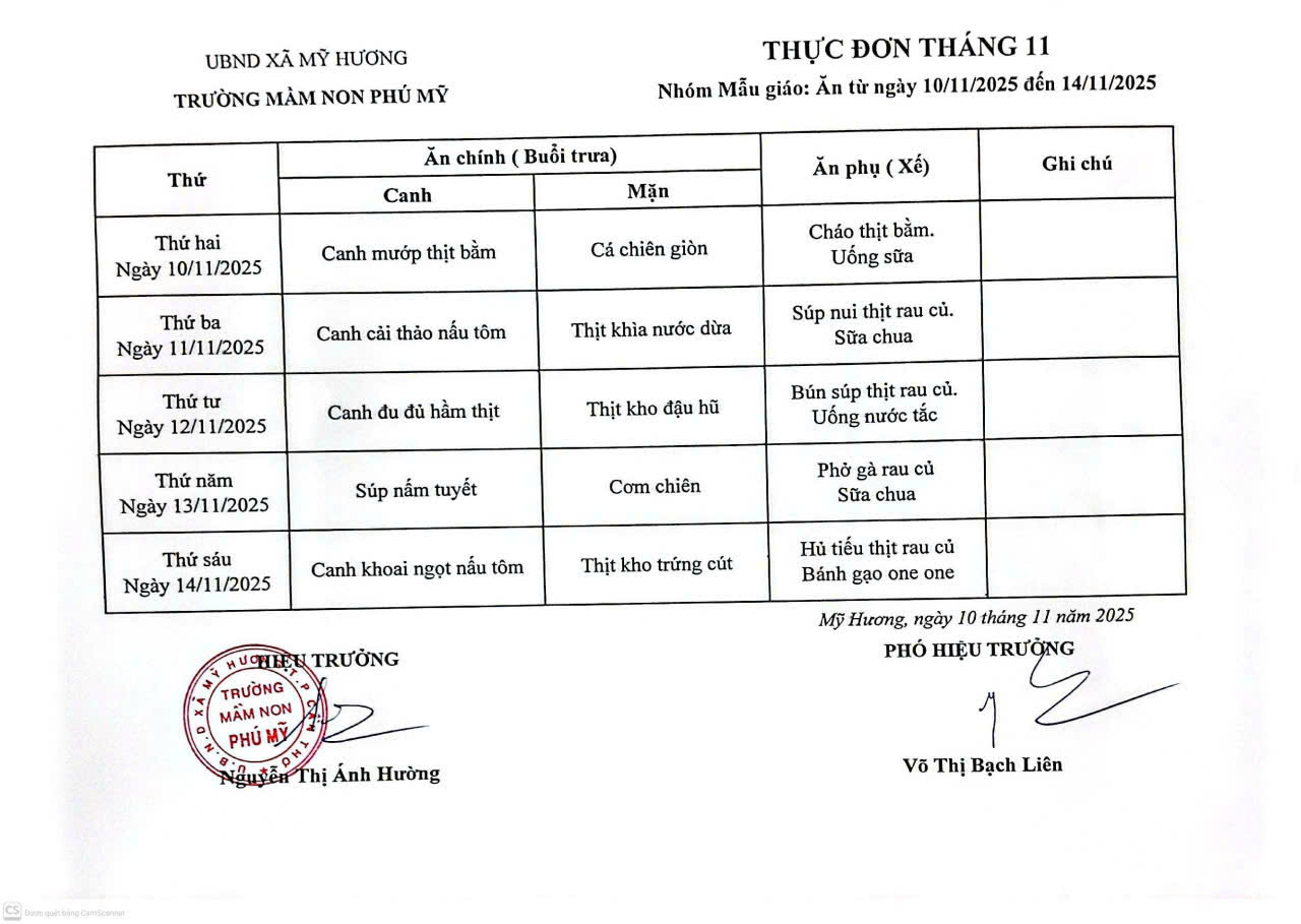 THỰC ĐƠN TUẦN 2 THÁNG 11