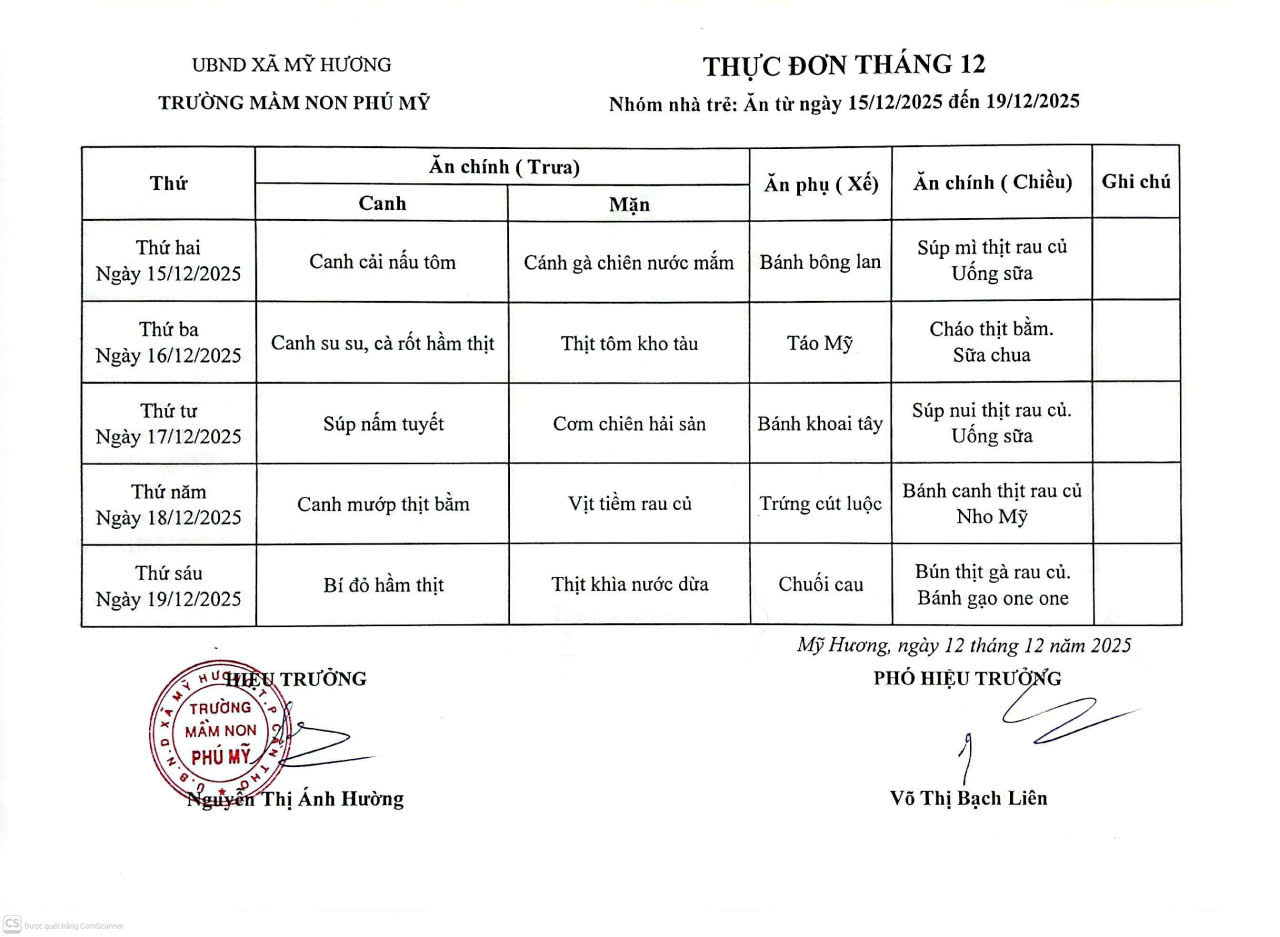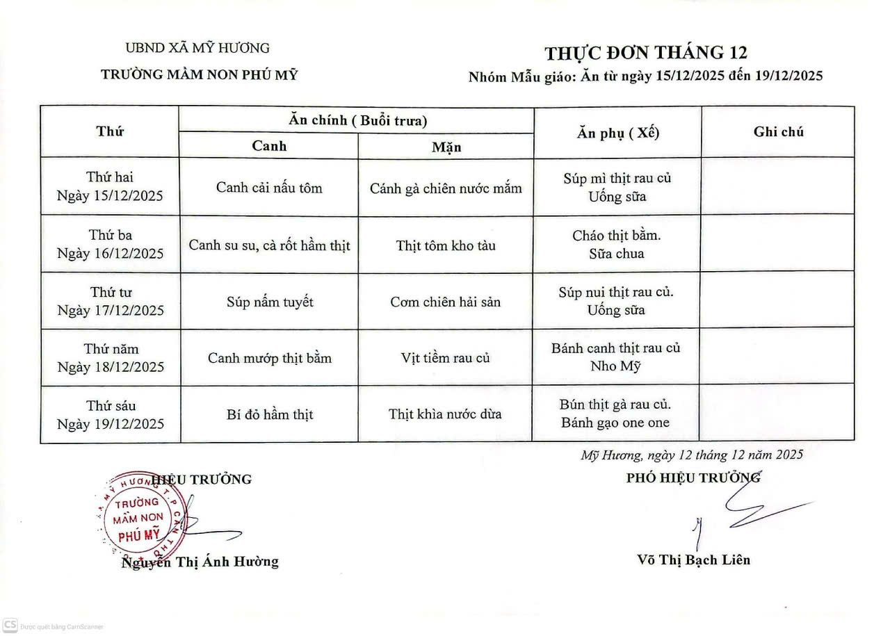THỰC ĐƠN TUẦN 3 THÁNG 12