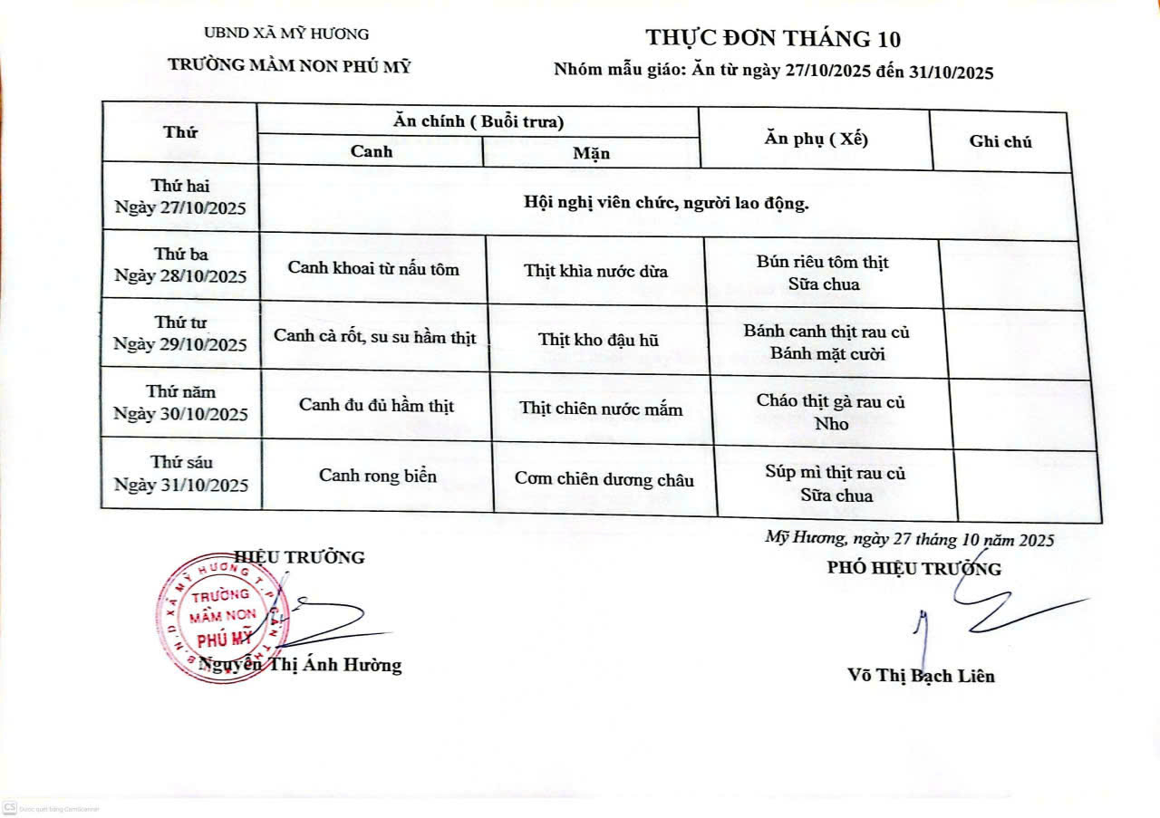 THỰC ĐƠN TUẦN 4 THÁNG 10