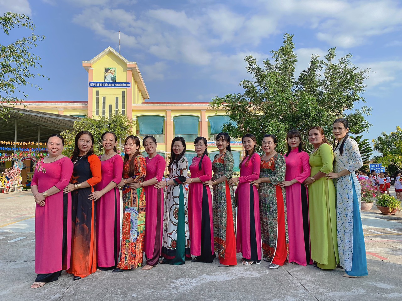 Bên cạnh đó, toàn thể nữ cán bộ, giáo viên, nhân viên nhà trường tích cực hưởng ứng “Tuần lễ áo dài Việt Nam” do Liên đoàn Lao động huyện Mỹ tú phát động (từ ngày 01/3/2023 đến ngày 08/3/2023) và sau đây là một số hình ảnh hưởng ứng “Tuần lễ áo dài Việt Nam” của nhà trường: