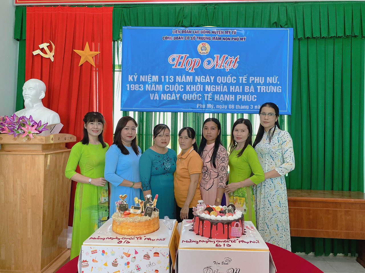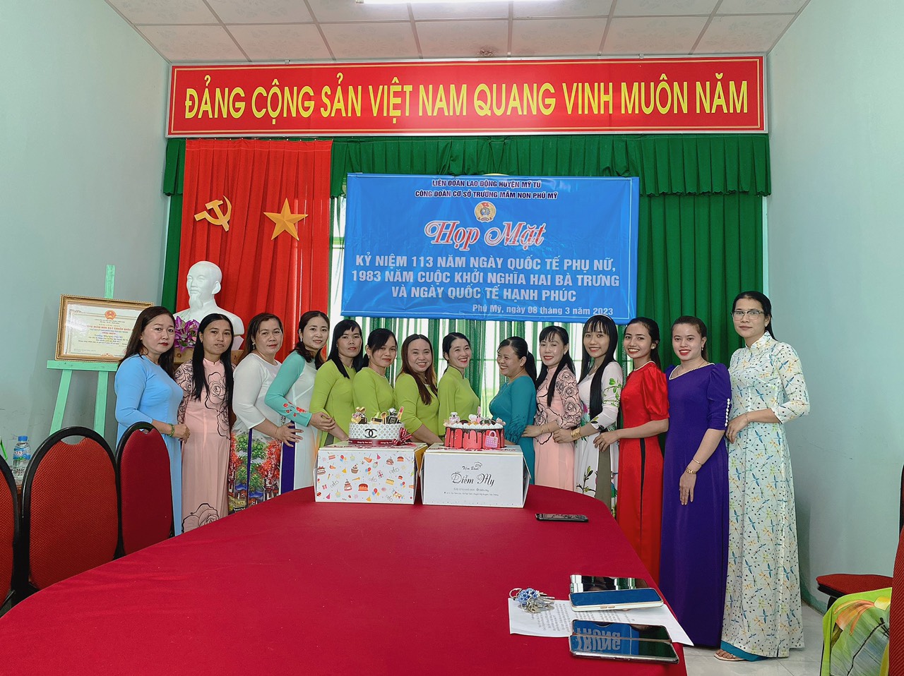 Hòa trong không khí vui vẻ, phấn khởi chào mừng 113 năm Ngày Quốc tế phụ nữ 8/3 và cuộc khởi nghĩa Hai Bà Trưng. Sáng ngày 08 tháng 3 năm 2023, BCH Công đoàn trường Mầm non Phú Mỹ đã tổ chức buổi họp mặt kỷ niệm chào mừng 113 năm Ngày Quốc tế phụ nữ 8/3 và cuộc khởi nghĩa Hai Bà Trưng và ngày Quốc tế hạnh phúc.